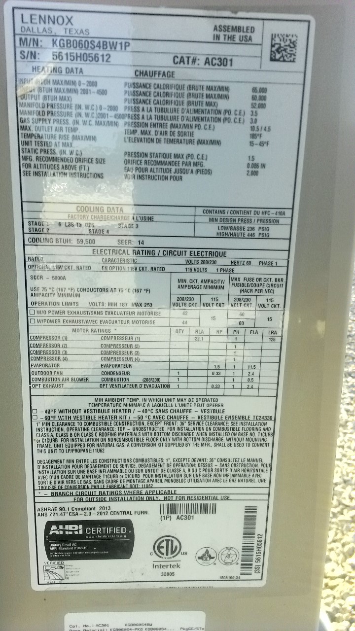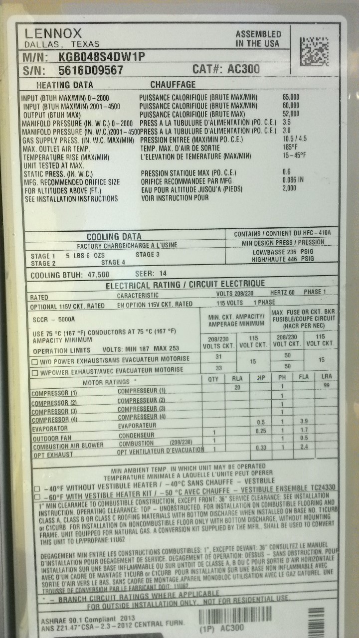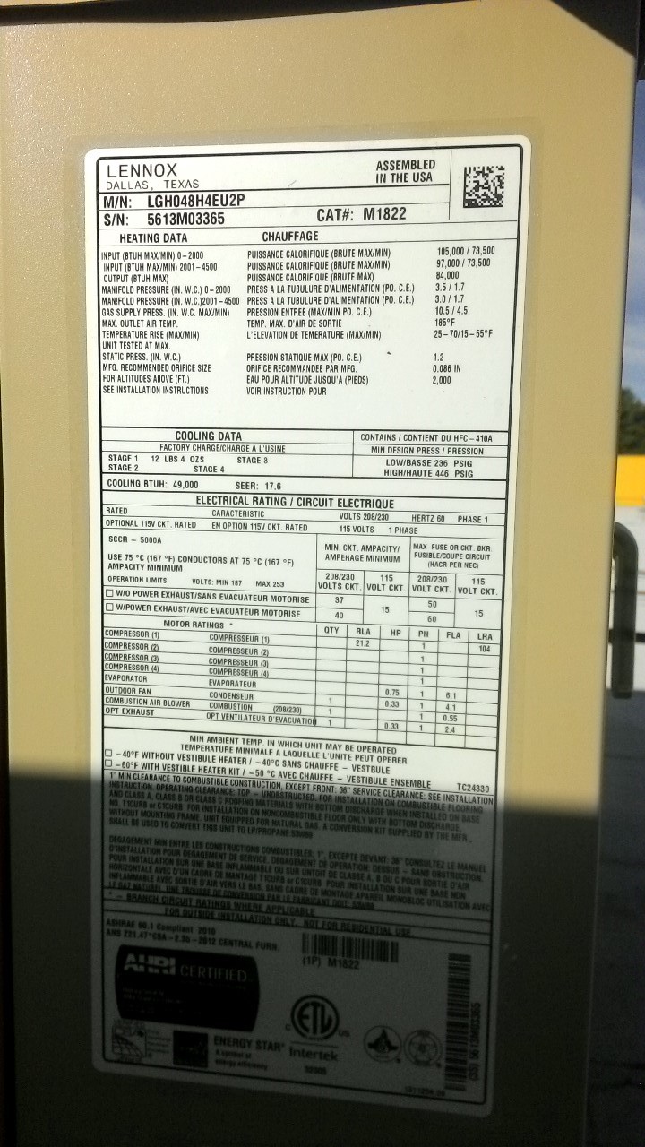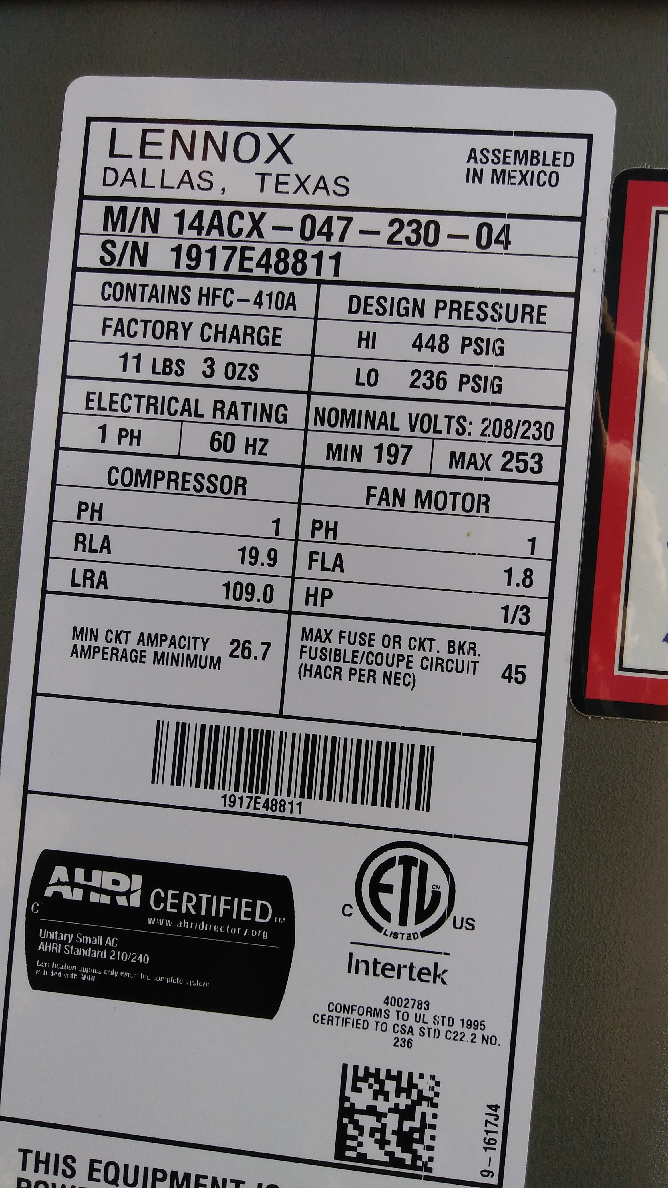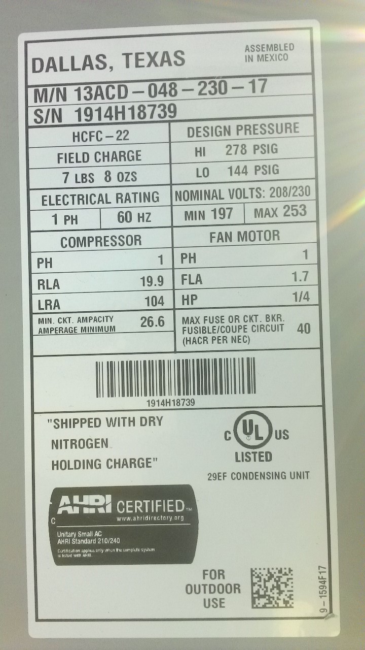 | 4 | n/a | 2014 | 13ACD-048-230-17 | 1914H18739 | 4 Ton | *** | Cond | |||