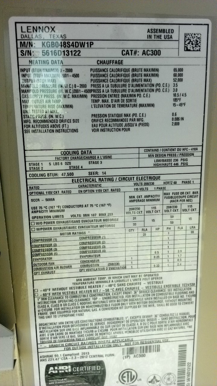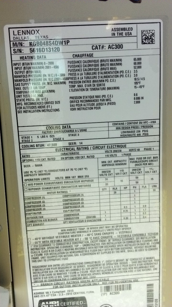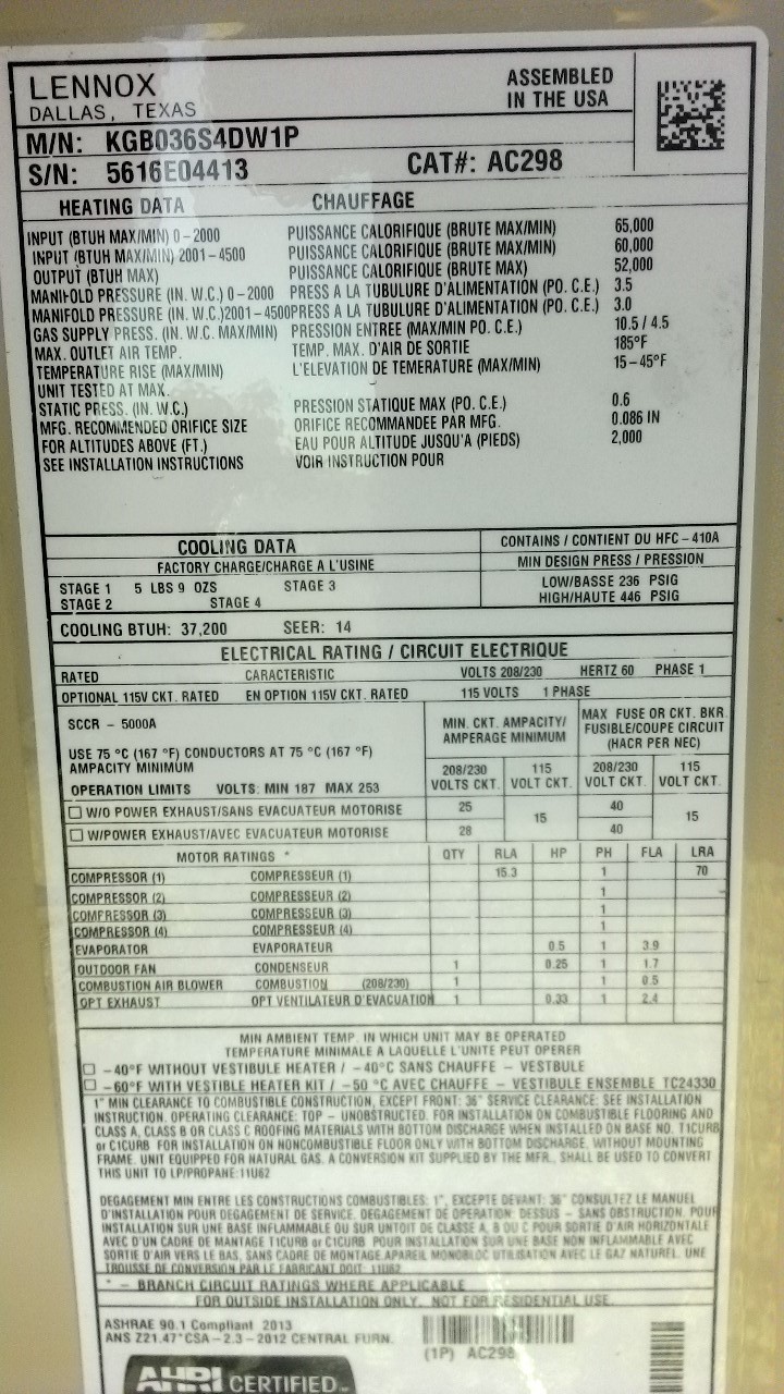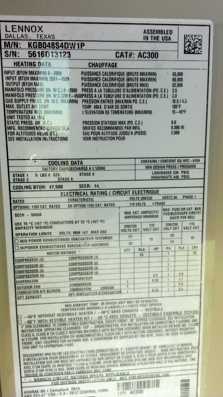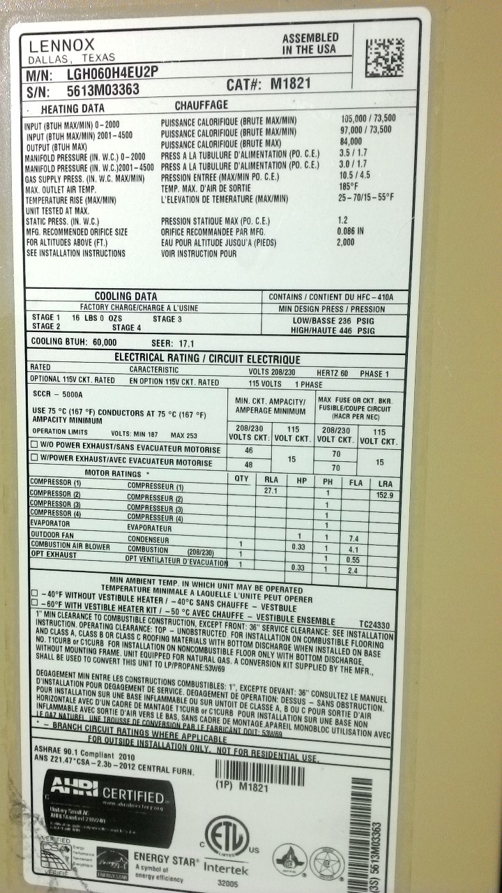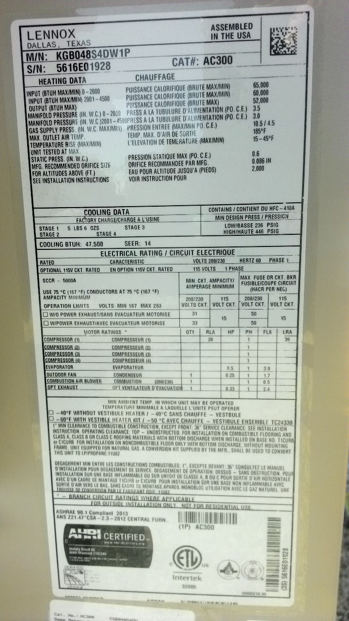 | 4 | n/a | 2014 | 13ACD-048-230-17 | 1914H18739 | 4 Ton | *** | Cond | |||
