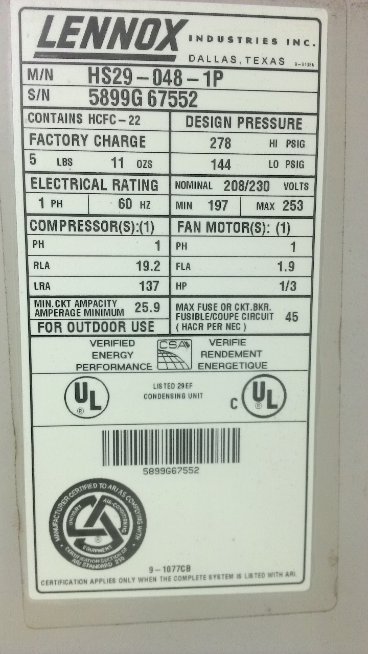 | 5 | n/a | 1999 | HS29-048-1P | 5899G67552 | 4 Ton | *** | Cond | |||