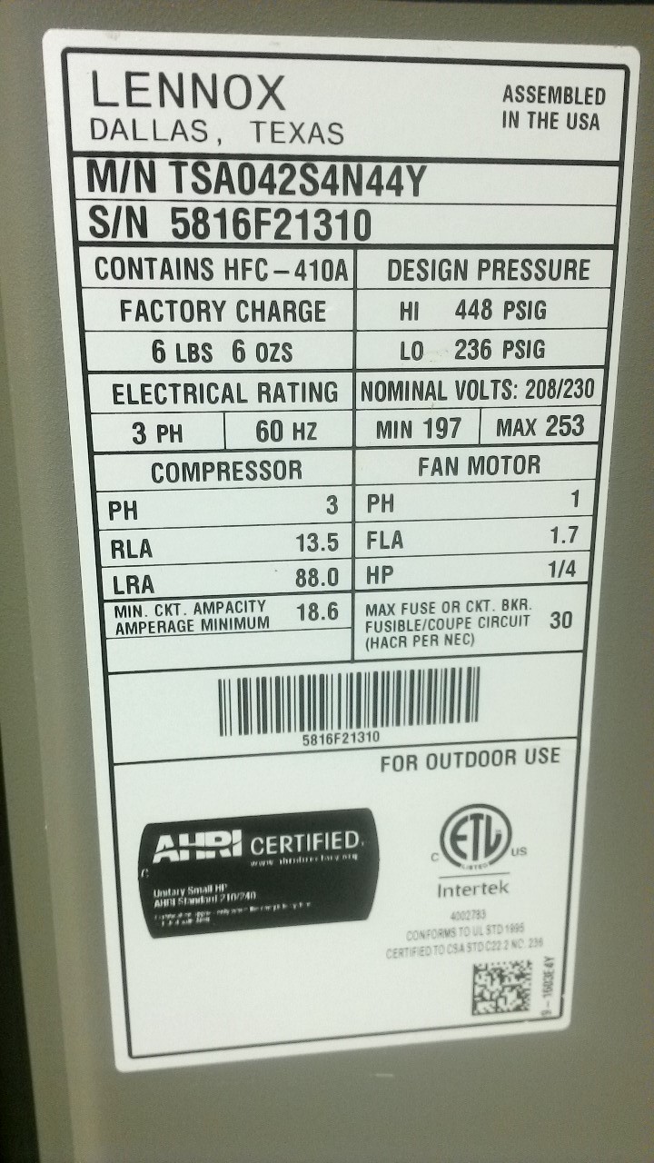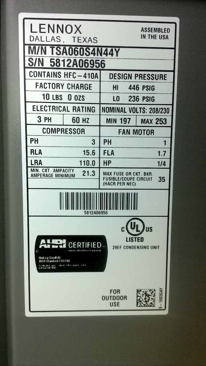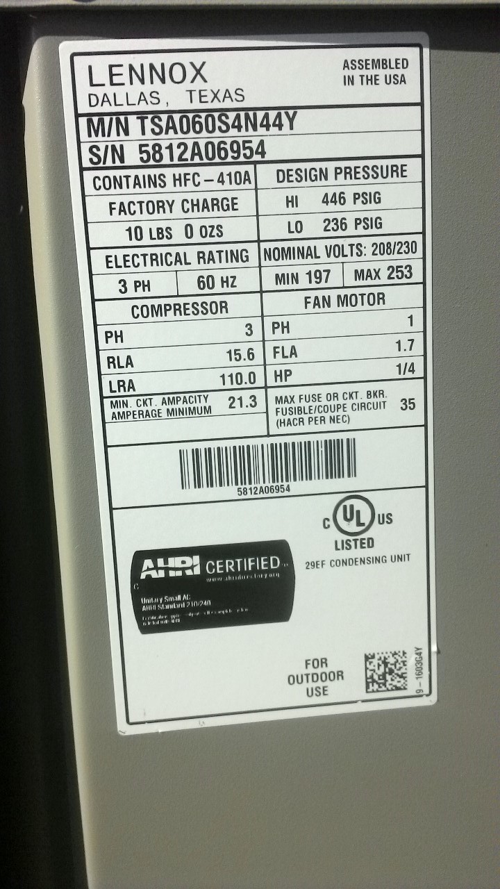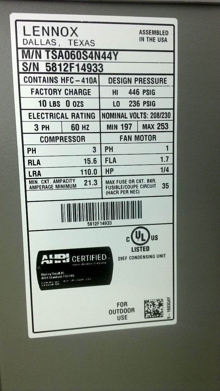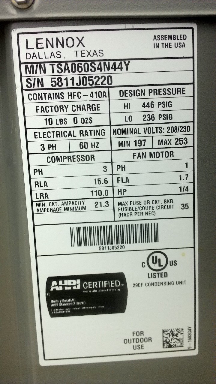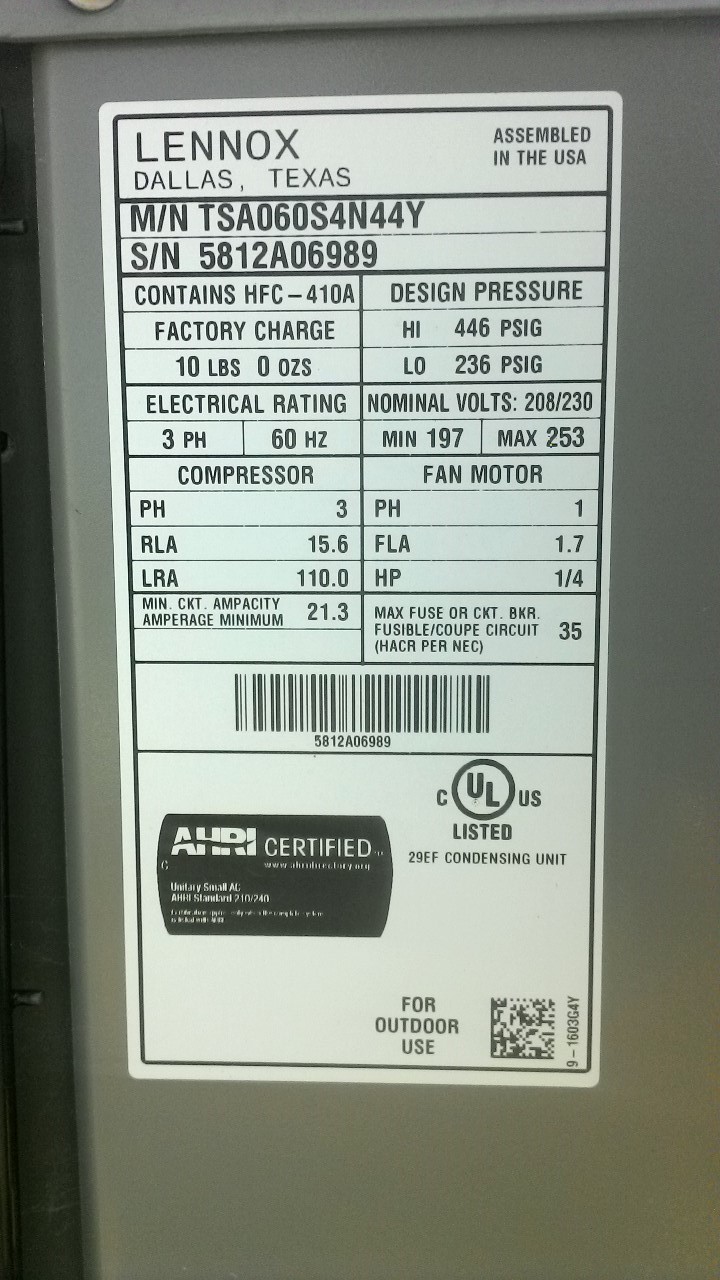 | 60 | n/a | 2015 | TSA060H4N42Y | 5815G13946 | 5 Ton | *** | Cond | |||