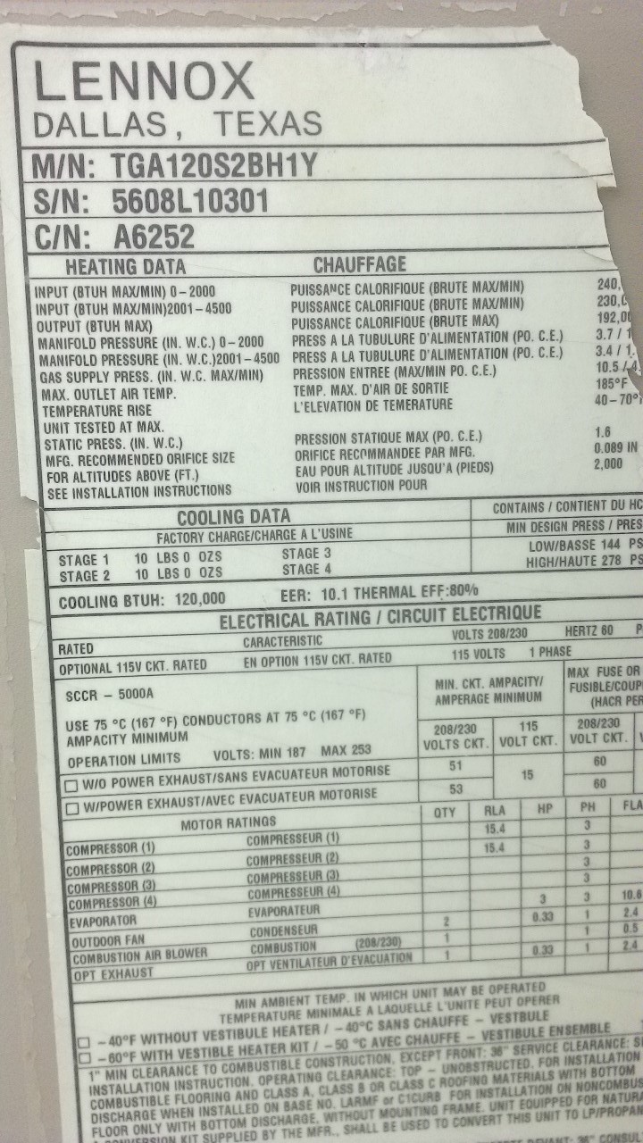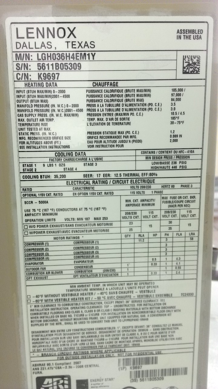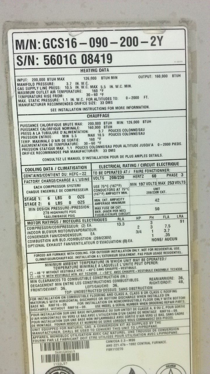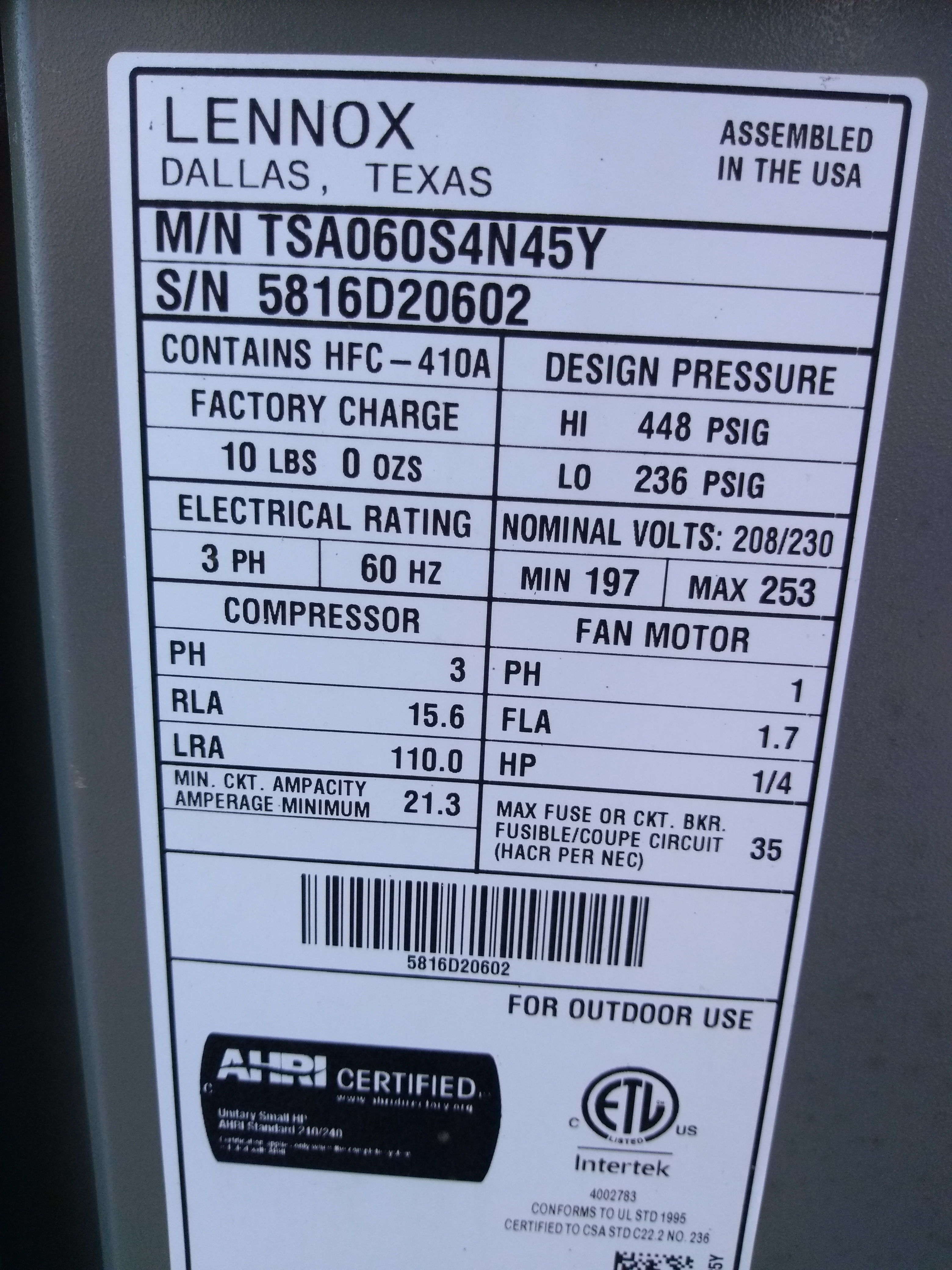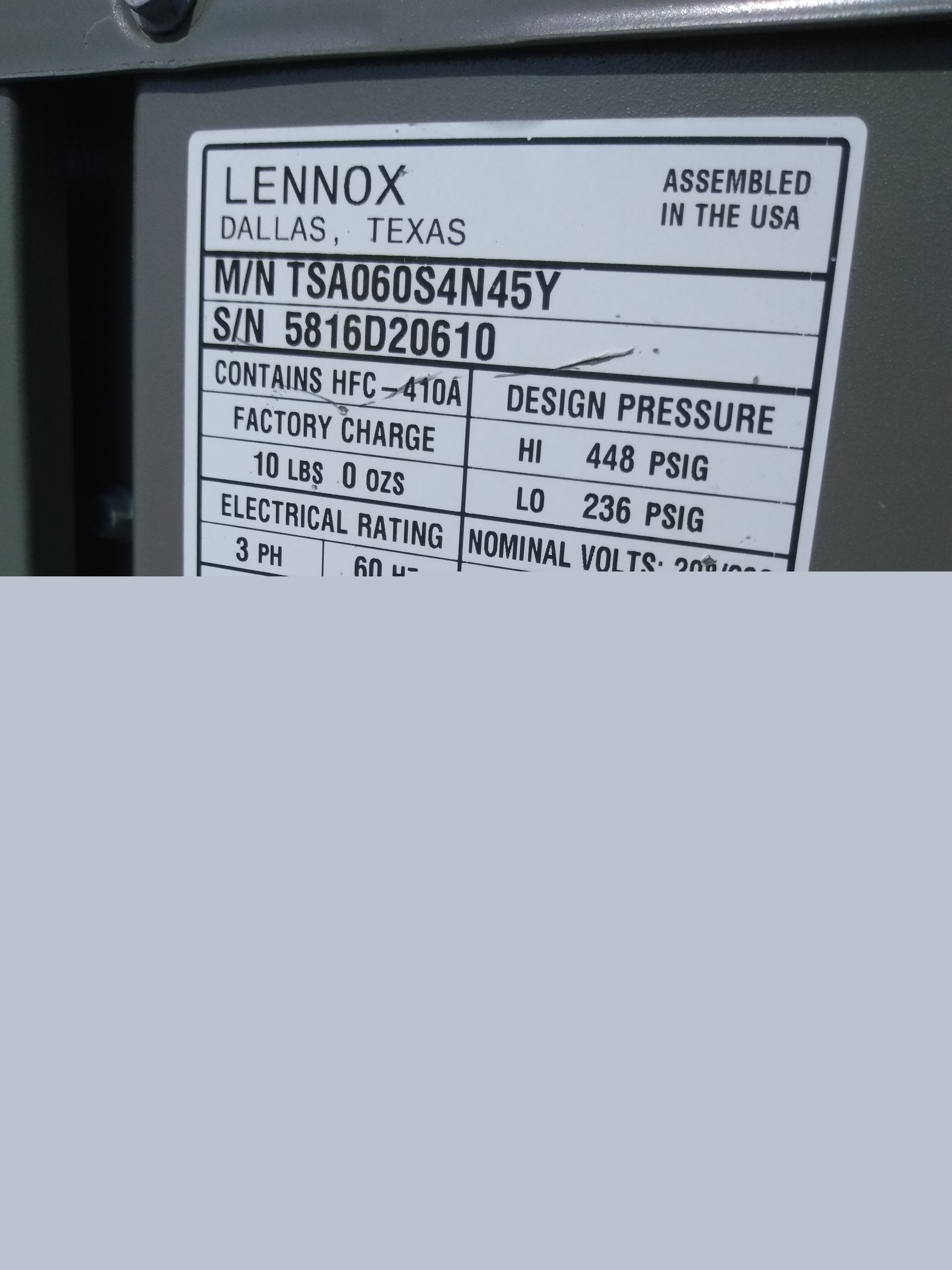 | 60 | n/a | 2015 | TSA060H4N42Y | 5815G13946 | 5 Ton | *** | Cond | |||