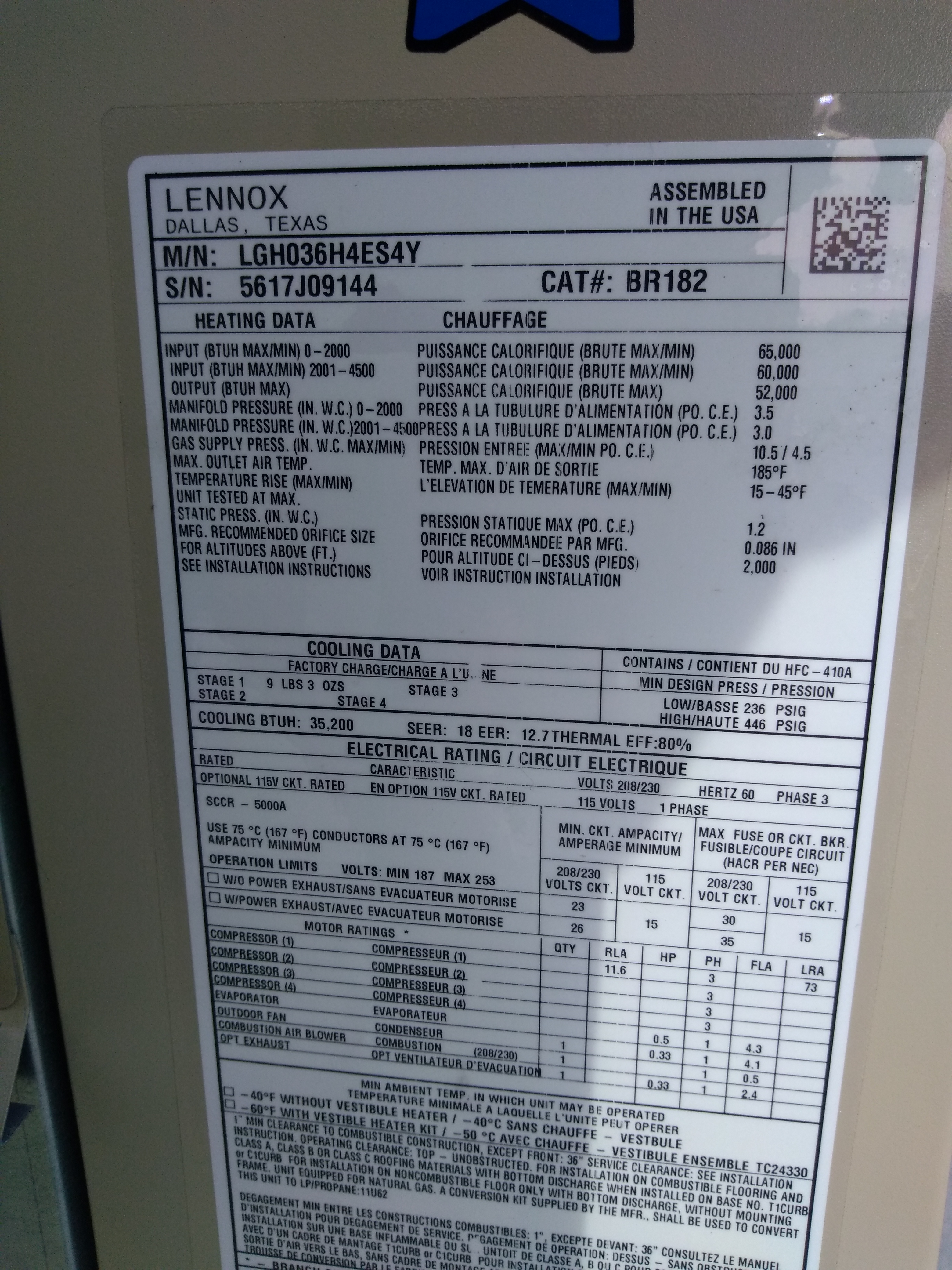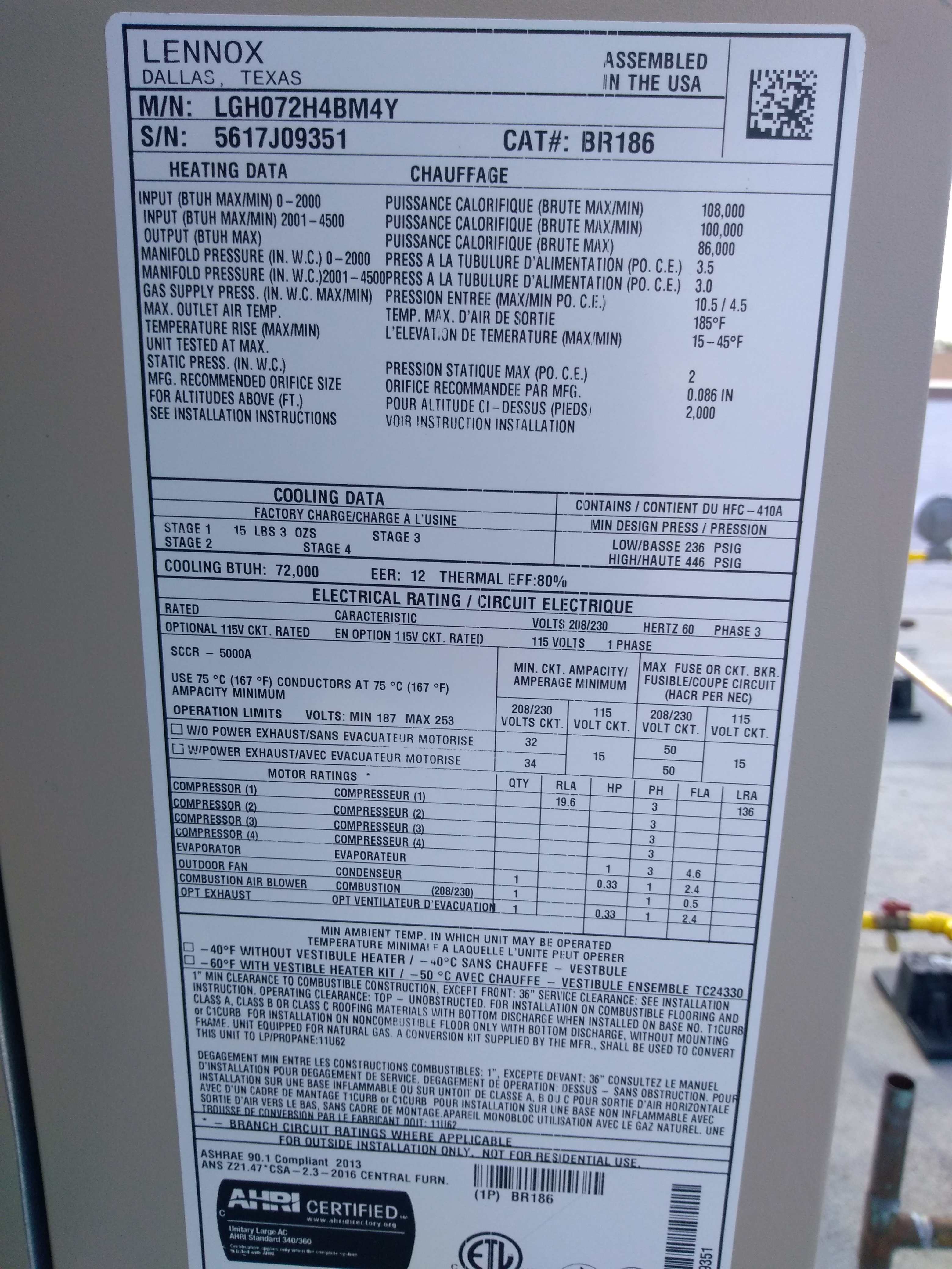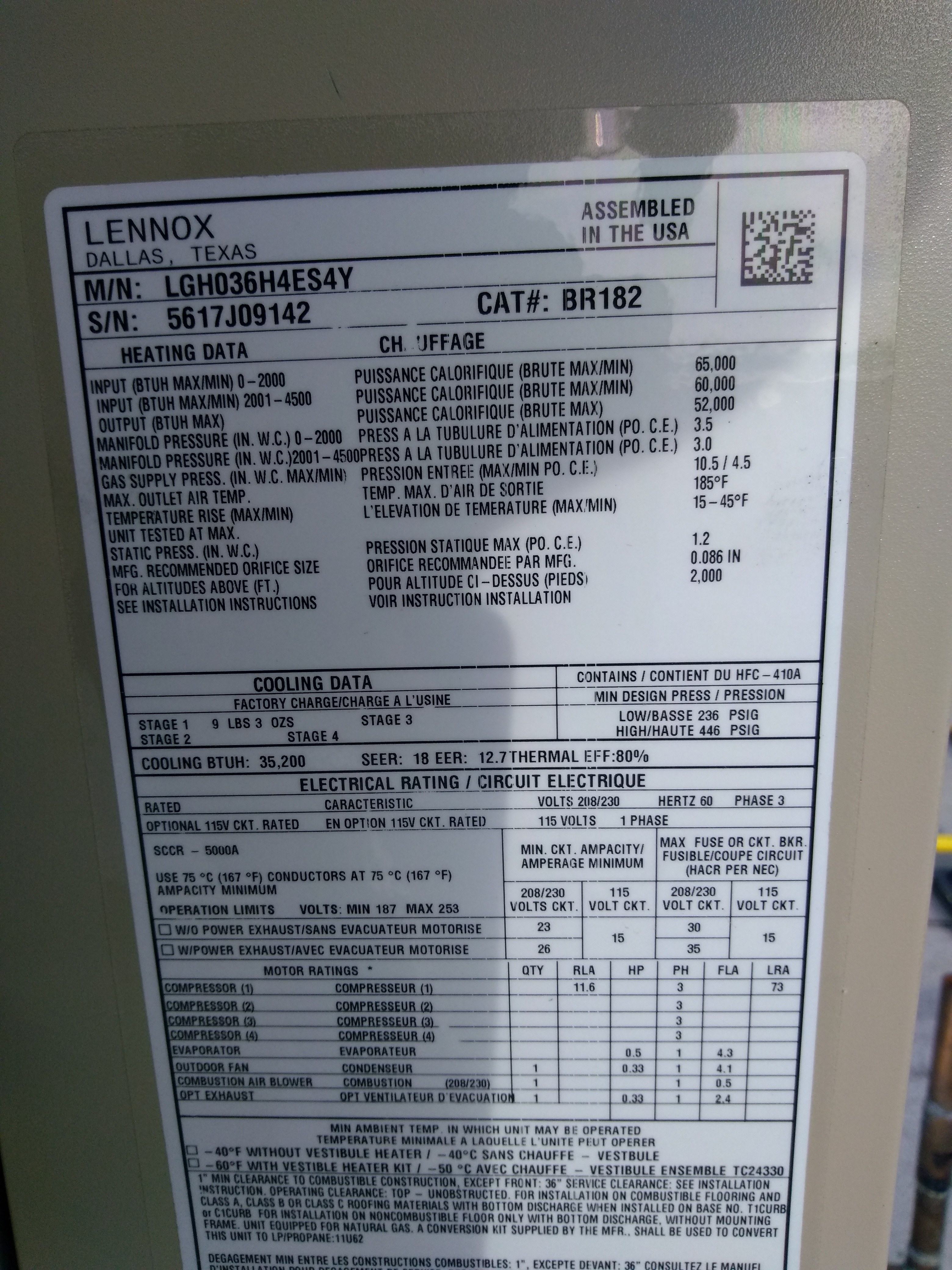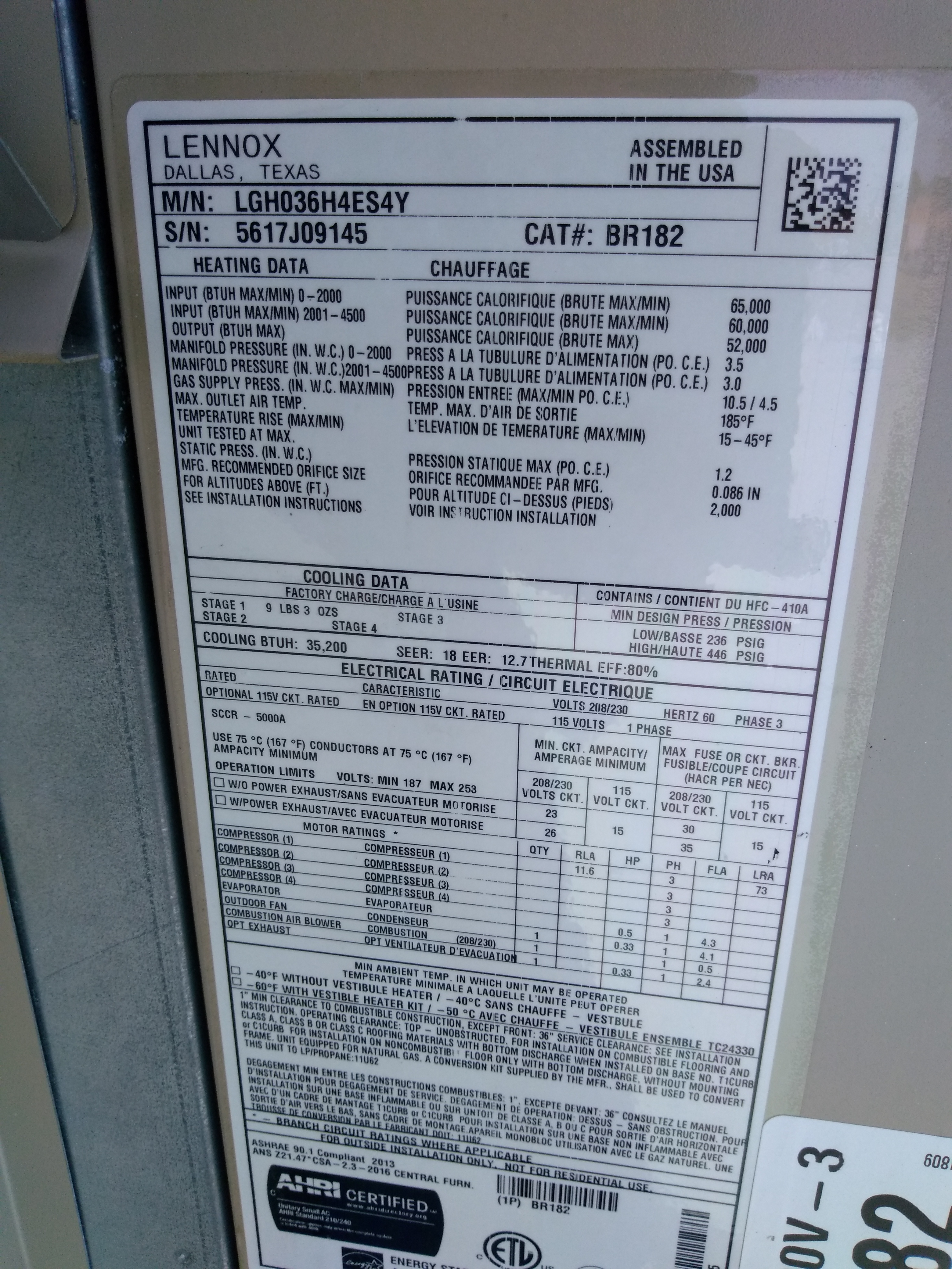 | 87 | n/a | 2012 | LGH036H4ES1Y | 5612C08174 | 3 Ton | 65 K | Direct | |||