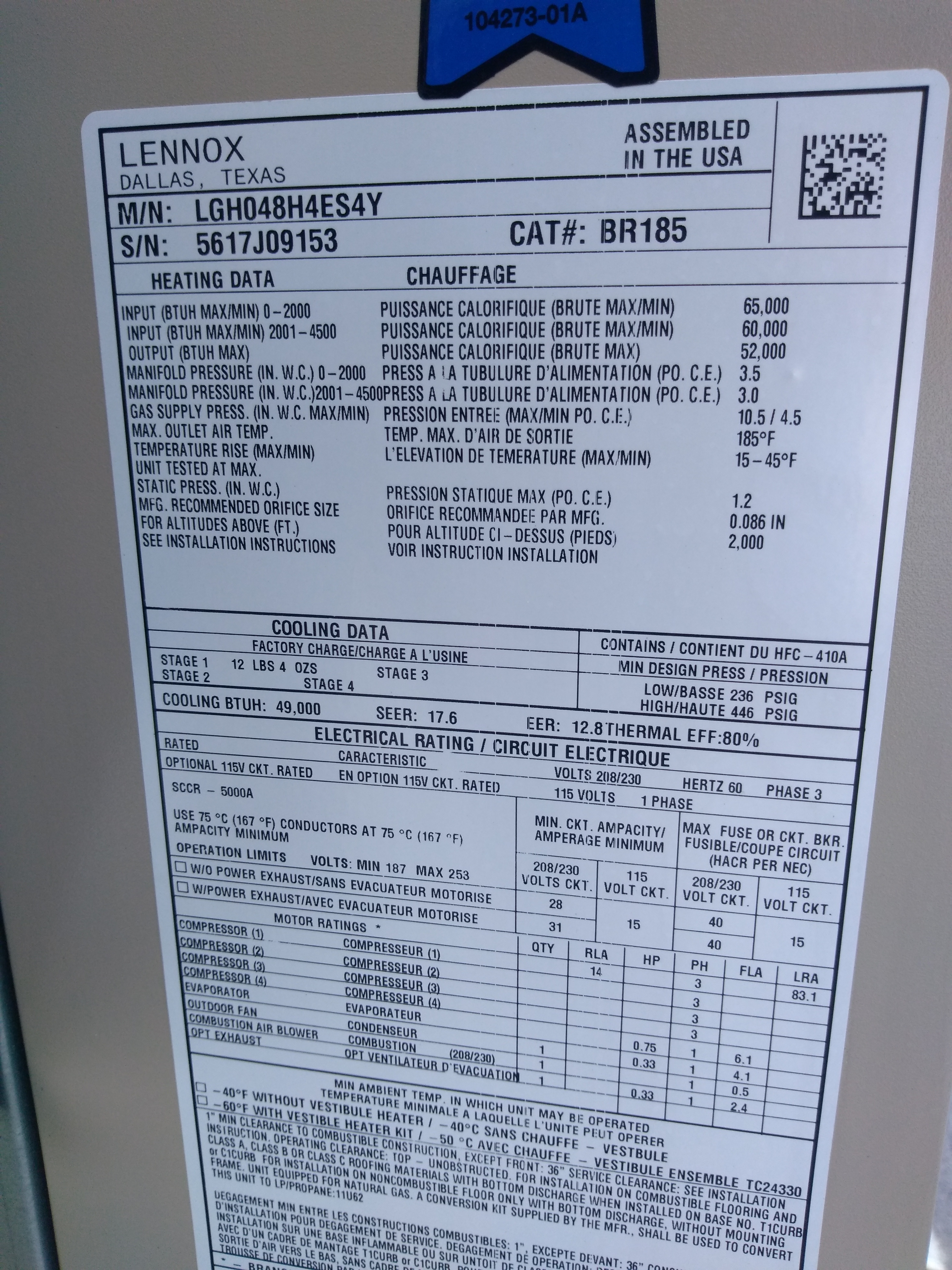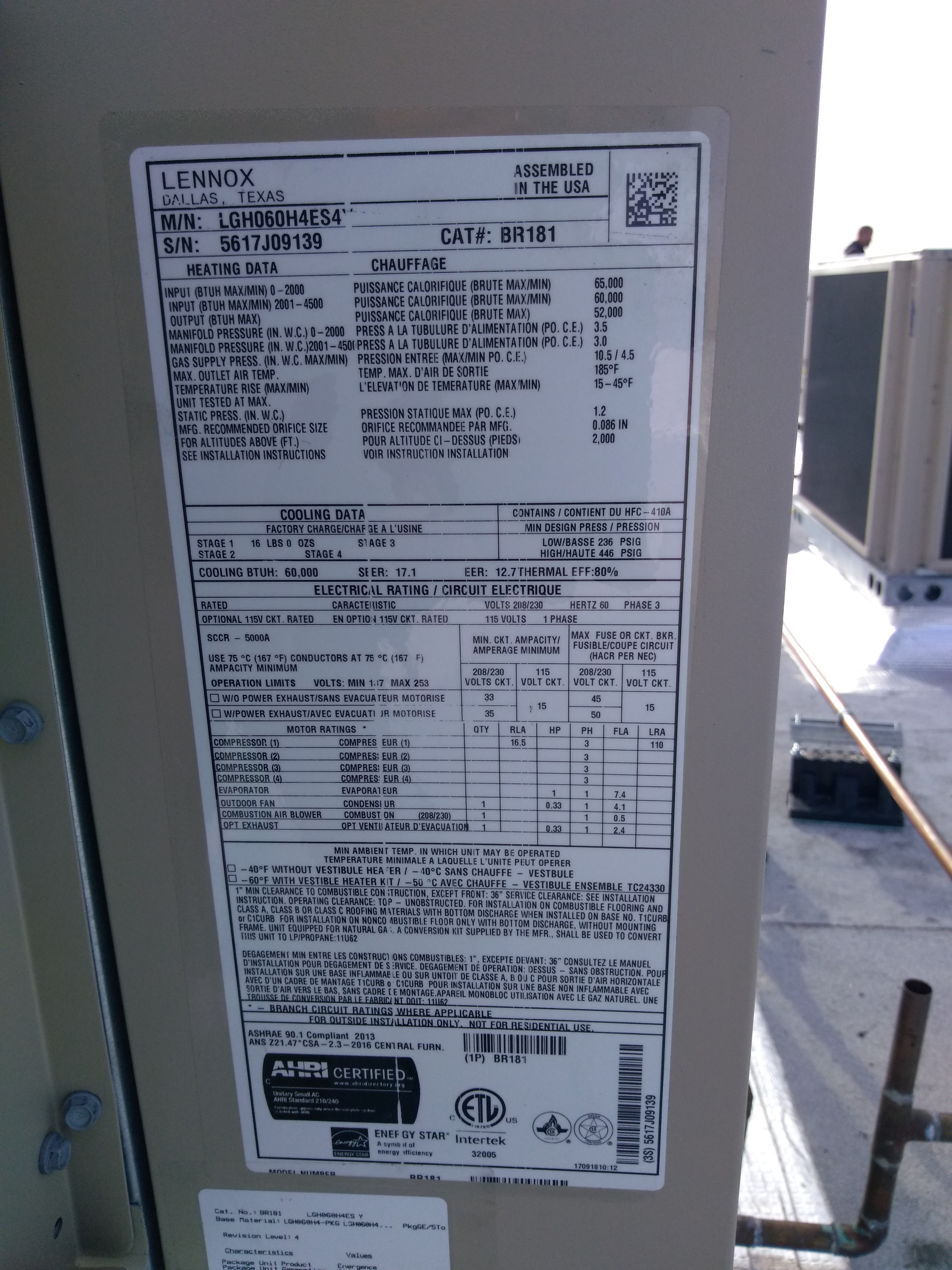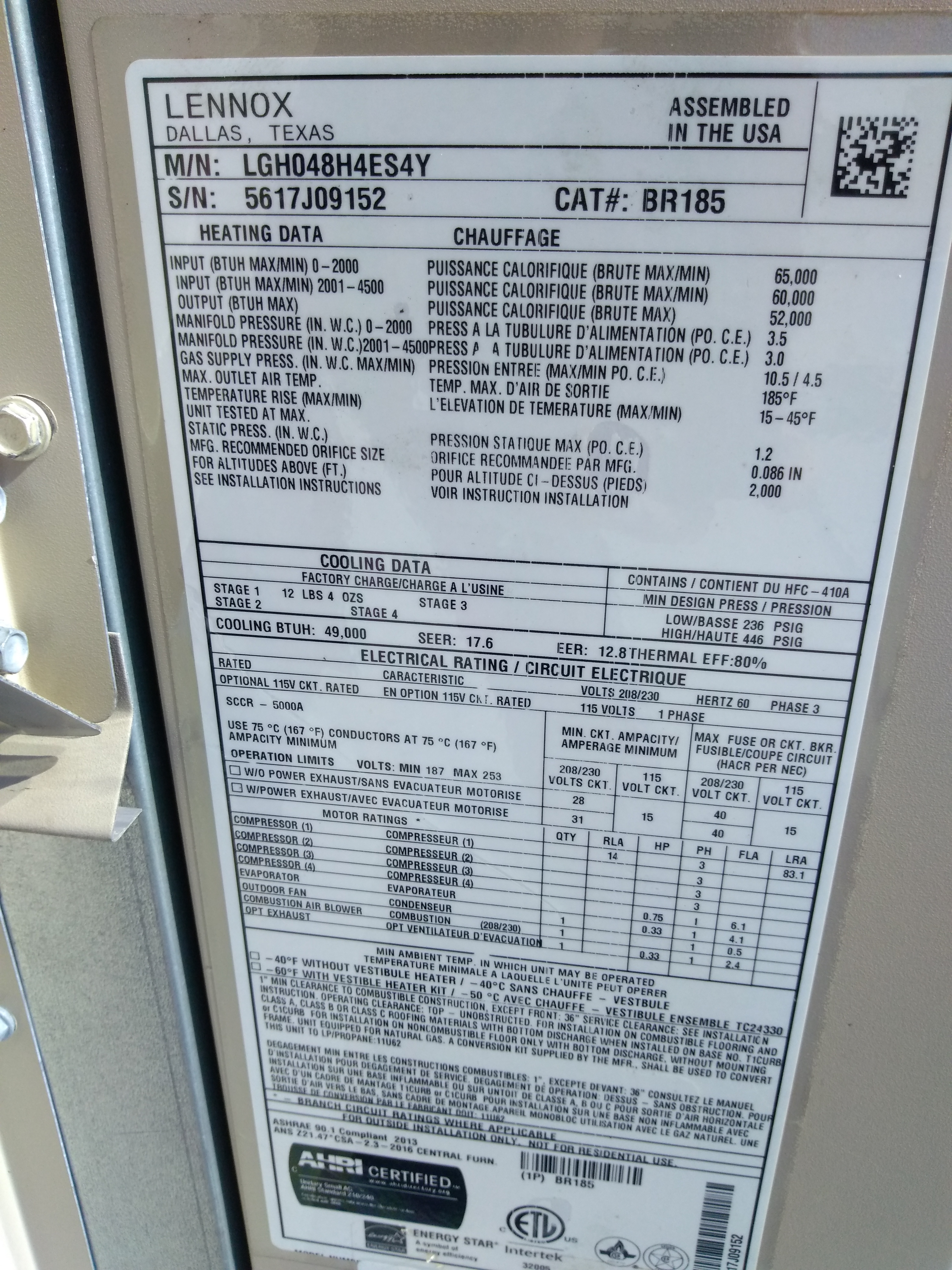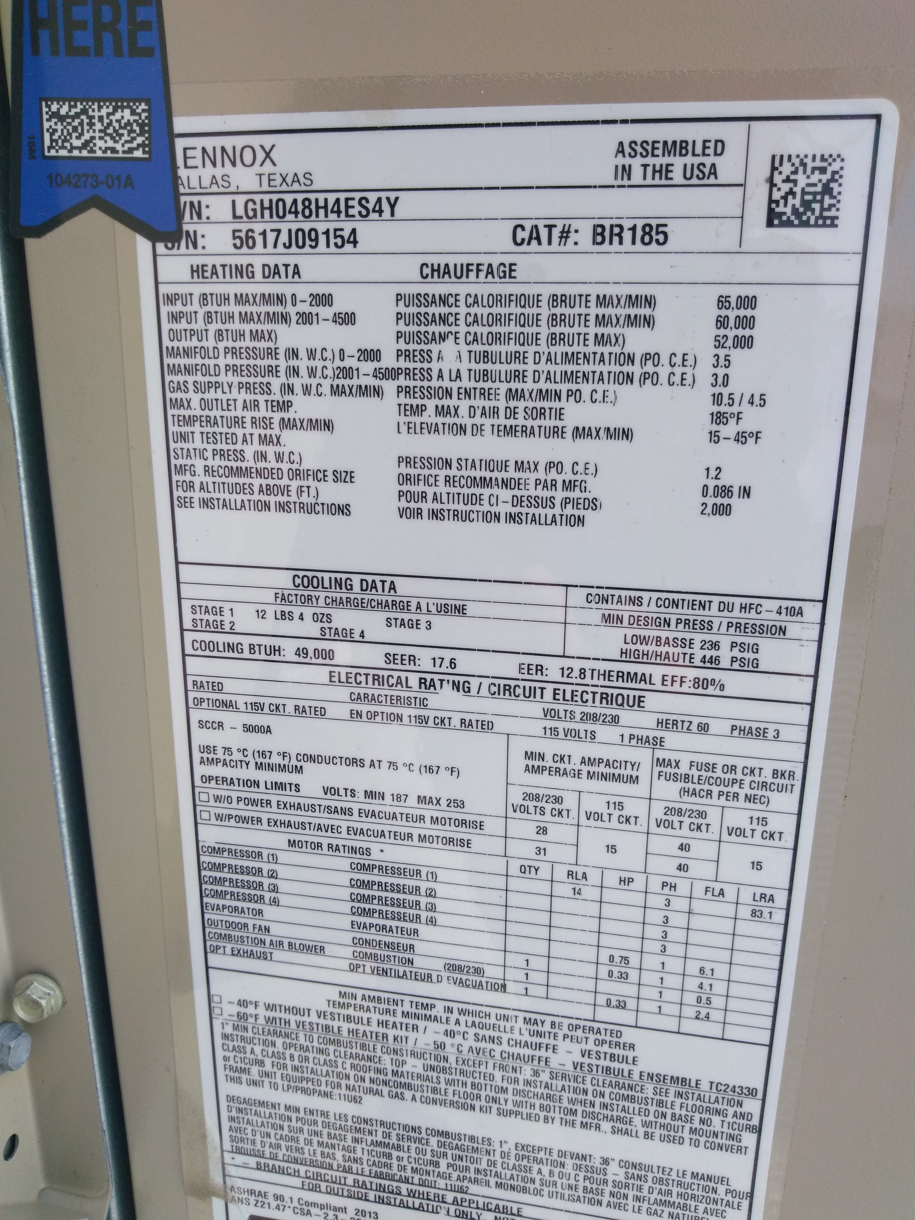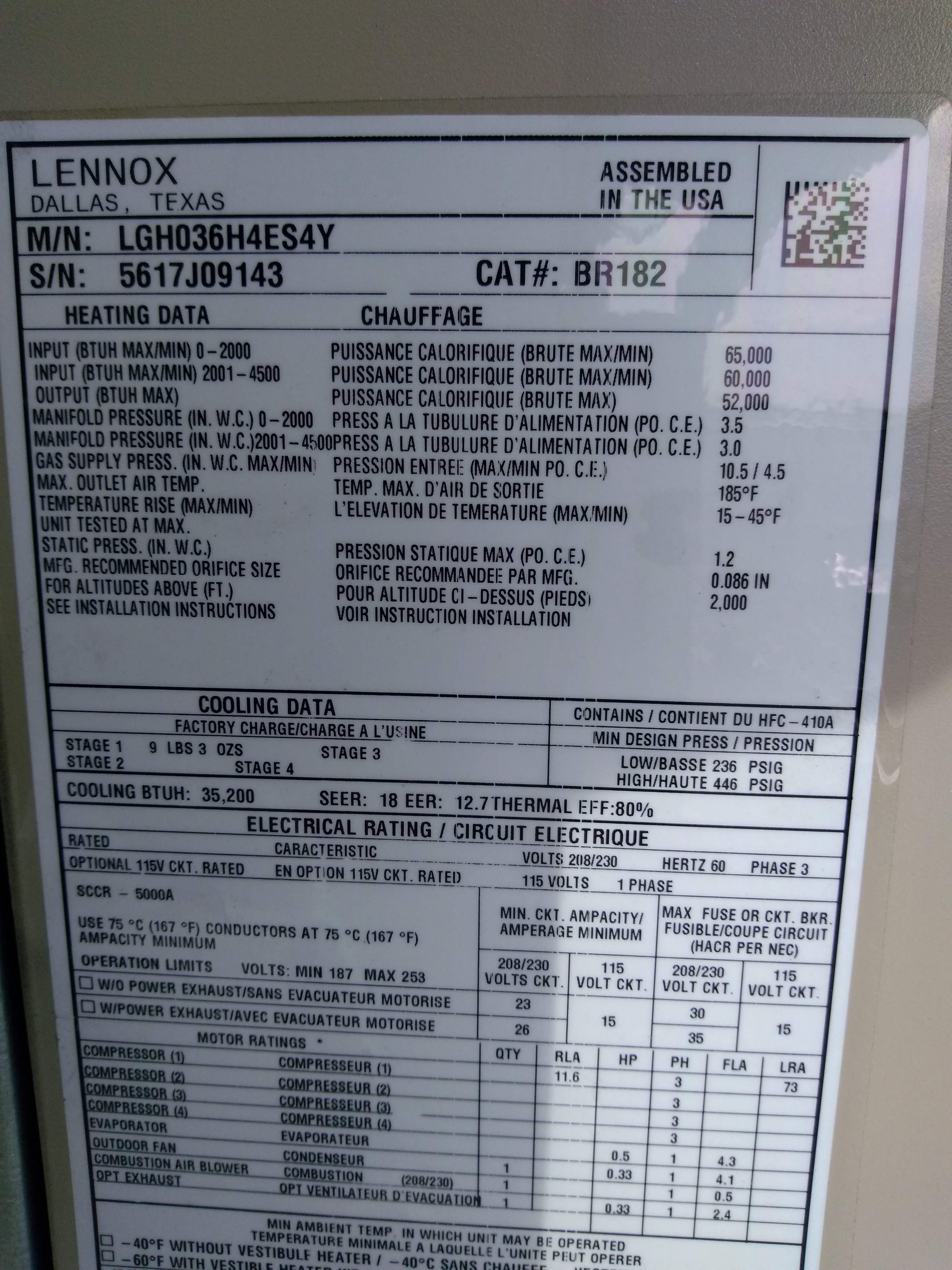 | 87 | n/a | 2012 | LGH036H4ES1Y | 5612C08174 | 3 Ton | 65 K | Direct | |||