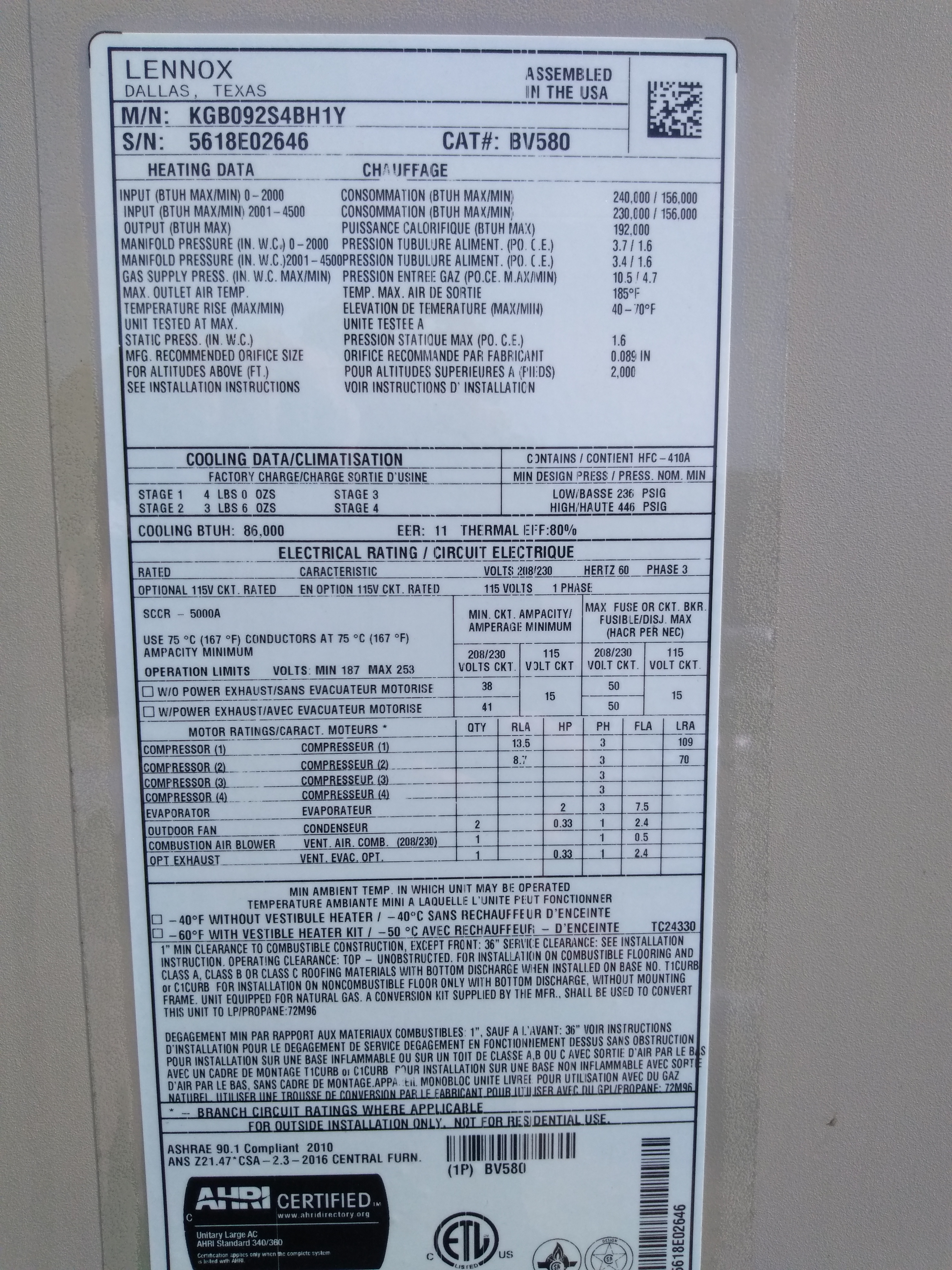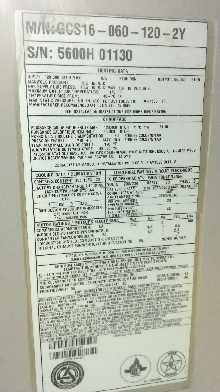 | 56 | n/a | 2015 | TSA060H4N42Y | 5815G13947 | 5 Ton | *** | Cond | |||