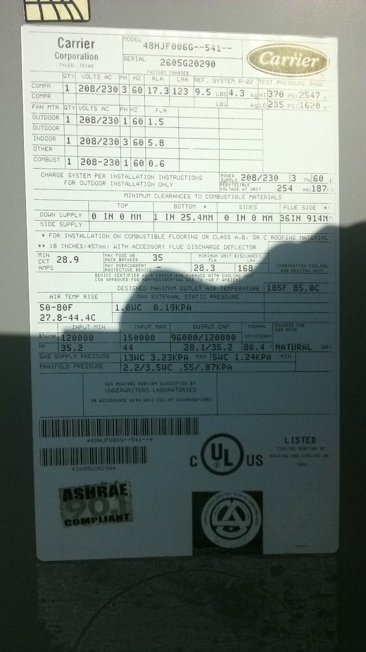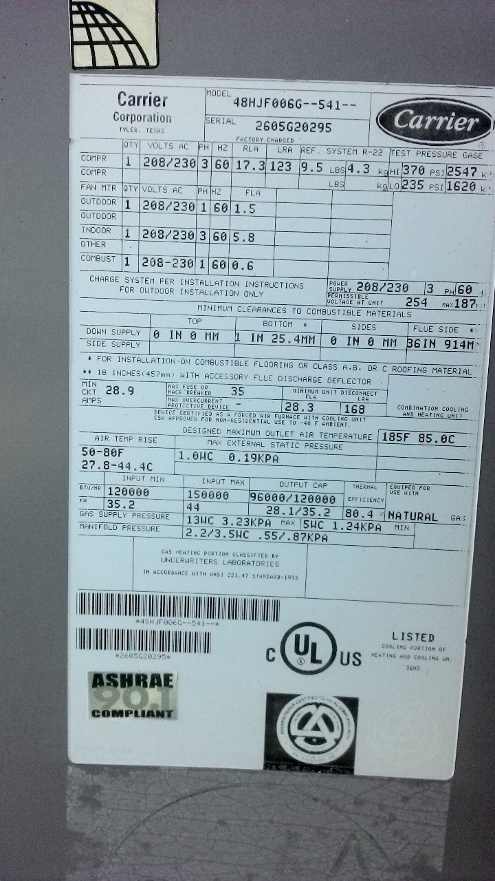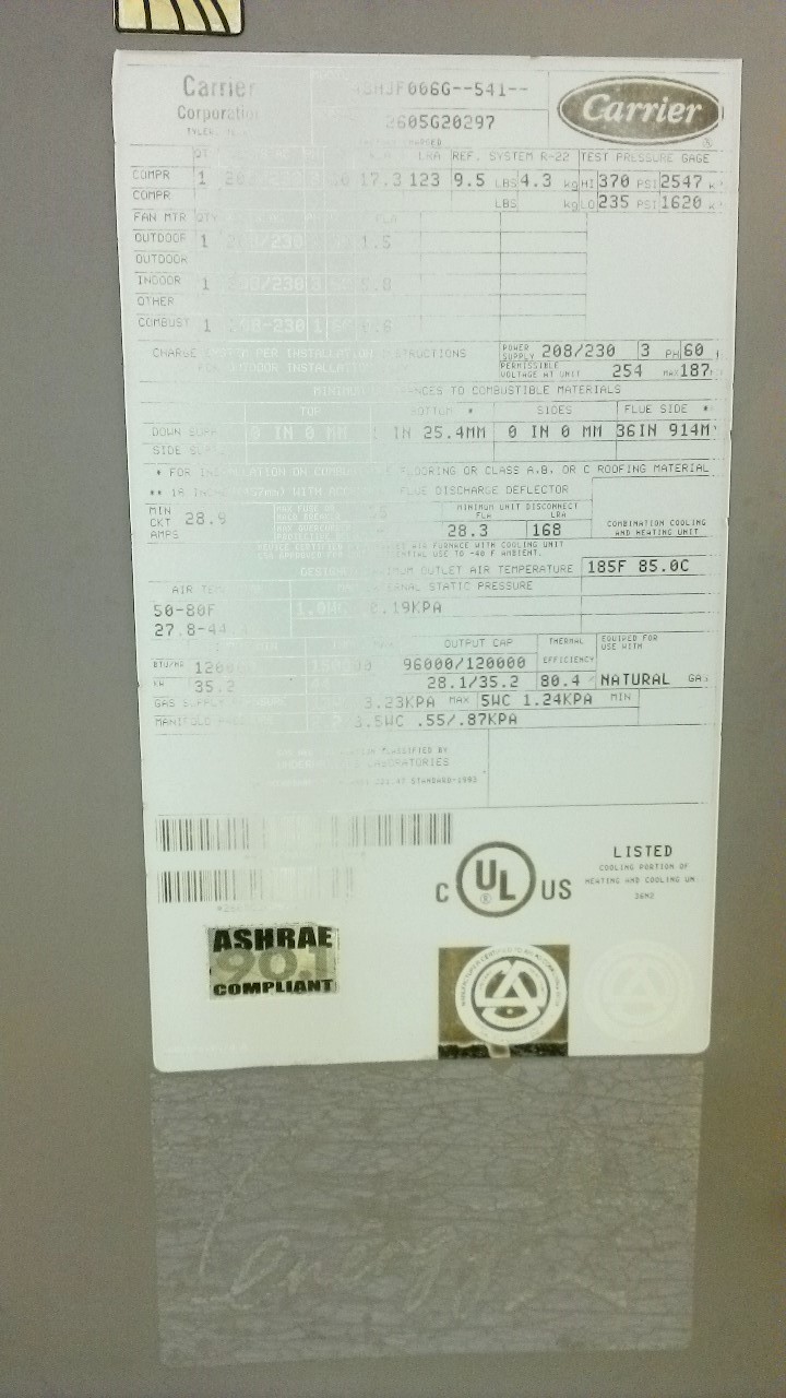 | GE# | Unit # | Mfg date | Model# | Serial# | Cool Tons | Heat btu's | Belts | |||