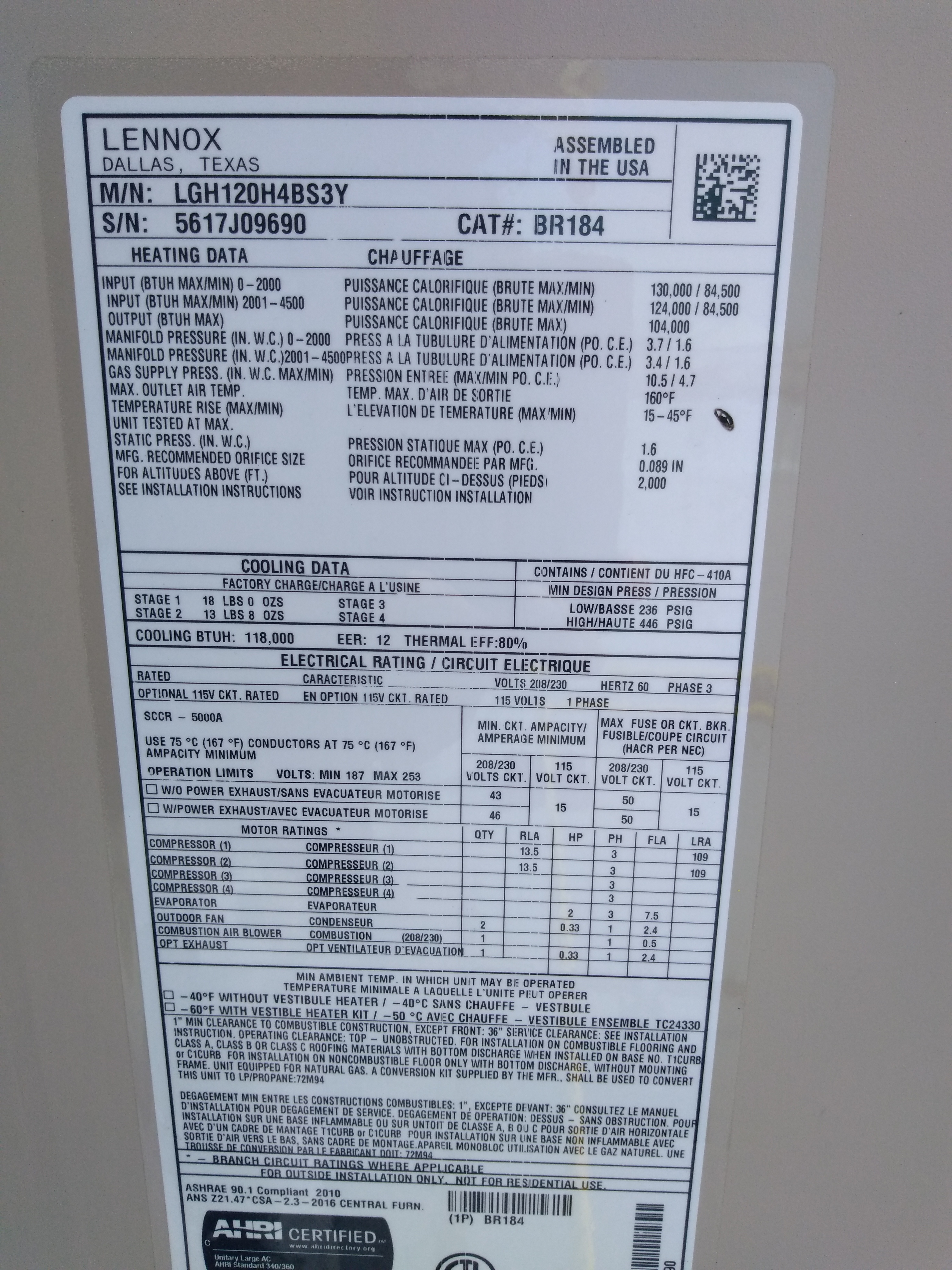 | 72 | n/a | 2012 | LGH120H4BH2Y | 5612C05248 | 10 Ton | 240 K | AX58 | |||